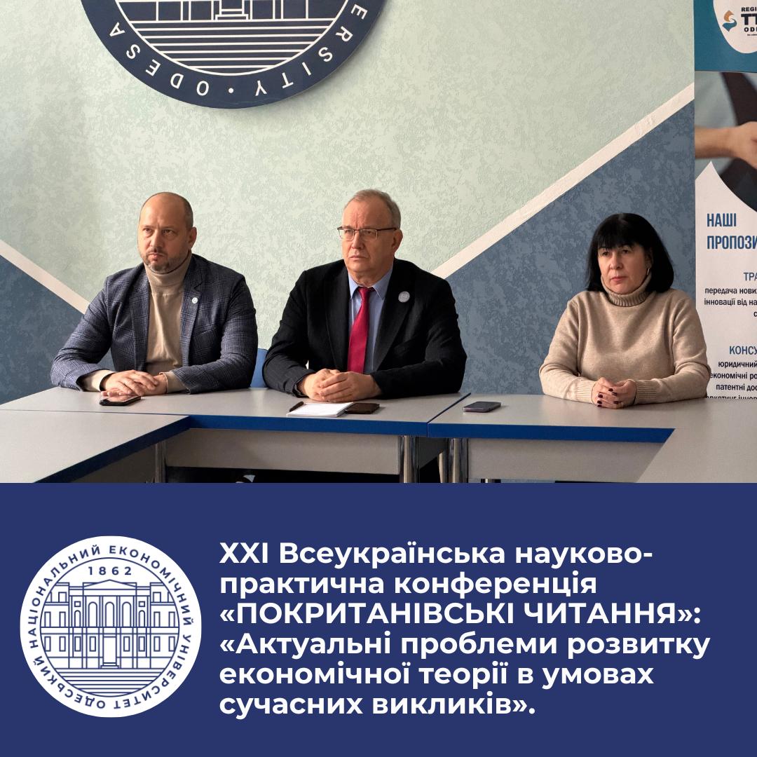 2 грудня 2025 р. в Одеському національному економічному університеті відбулася ХXІ Всеукраїнська науково-практична конференція «ПОКРИТАНІВСЬКІ ЧИТАННЯ» «Актуальні проблеми розвитку економічної теорії в умовах сучасних викликів».