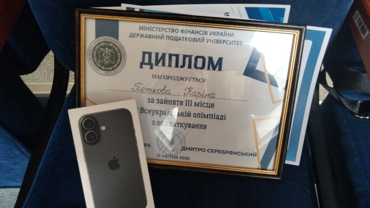 Студентка 4-го курсу факультету фінансів та банківської справи ОНЕУ (ОПП «Податкова та митна справа») ПЕТКОВА Каріна (науковий керівник – доцента кафедри фінансів ДУБОВИК Ольга), посіла призове місце на Всеукраїнській студентській олімпіаді з оподаткування, що проводилася в Державному податковому університеті (м. Ірпінь) 15 квітня 2026 р.