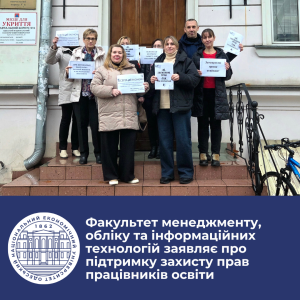 Сьогодні університет разом із профспілковою молоддю долучається до всеукраїнської ініціативи на підтримку прав освітян. Ми відкрито заявляємо про свою позицію: жодного звуження трудових гарантій, жодних рішень, що послаблюють соціальний захист працівників освіти.